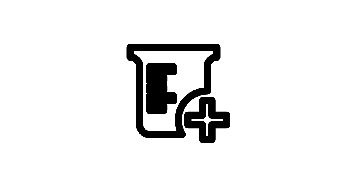 The beaker-plus icon represents a beaker with a plus sign, often used in laboratory settings to indicate an increase or addition of chemical substances.