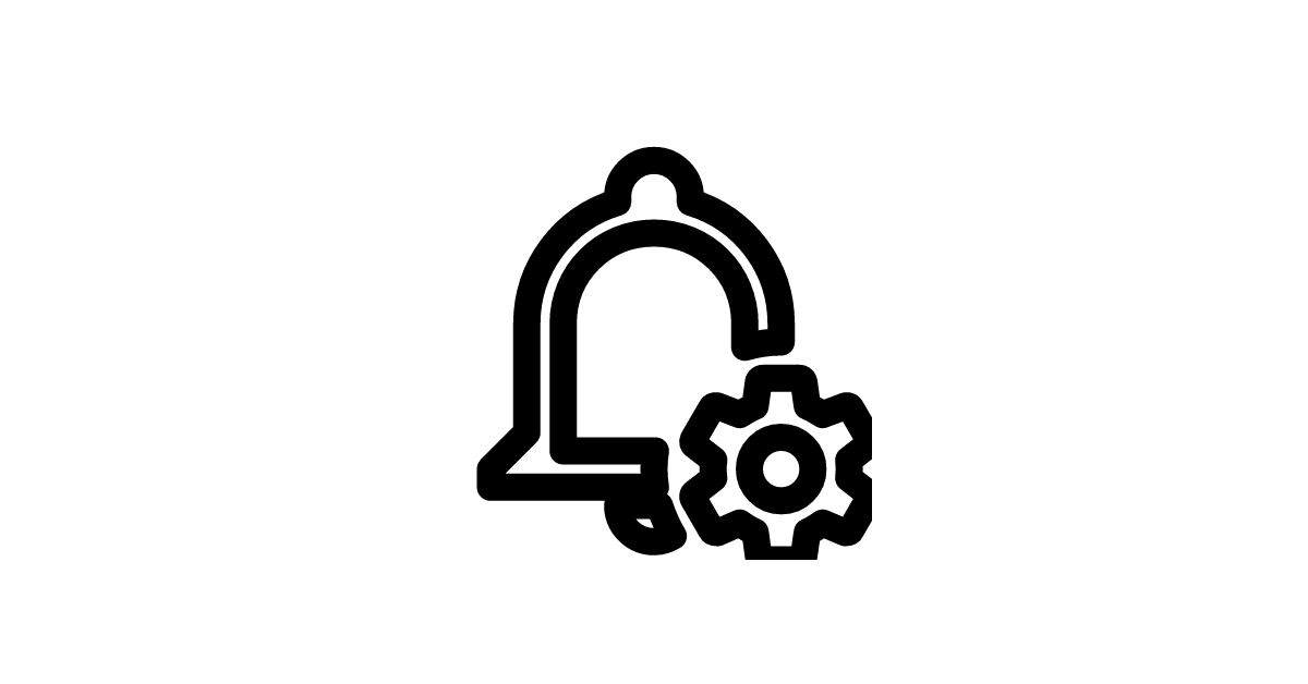 The bell-cog-outline icon represents a notification bell combined with a cogwheel in an outlined style, signifying settings or configuration related to notifications in a subtle manner.