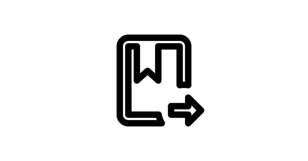 The book-arrow-right-outline icon represents a book with an arrow pointing to the right, outlined in a simple style.