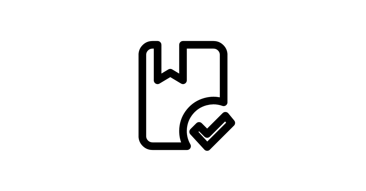 The book-check icon represents a book with a checkmark, indicating completion or confirmation of a book or document.