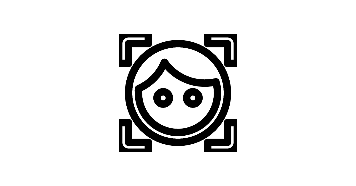 The face-recognition icon represents a person's face being recognized or identified through biometric technology.