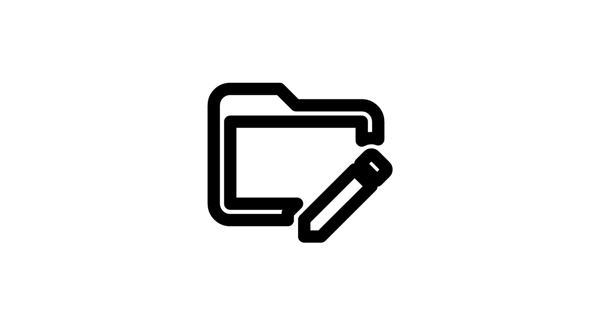 The folder edit outline icon represents a folder with an edit symbol in outline form, indicating modification or customization of the folder.