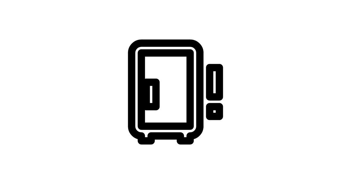 The fridge-industrial-alert-outline icon represents an industrial refrigerator with an alert or warning sign, similar to the fridge-industrial-alert icon, but with an outlined style.