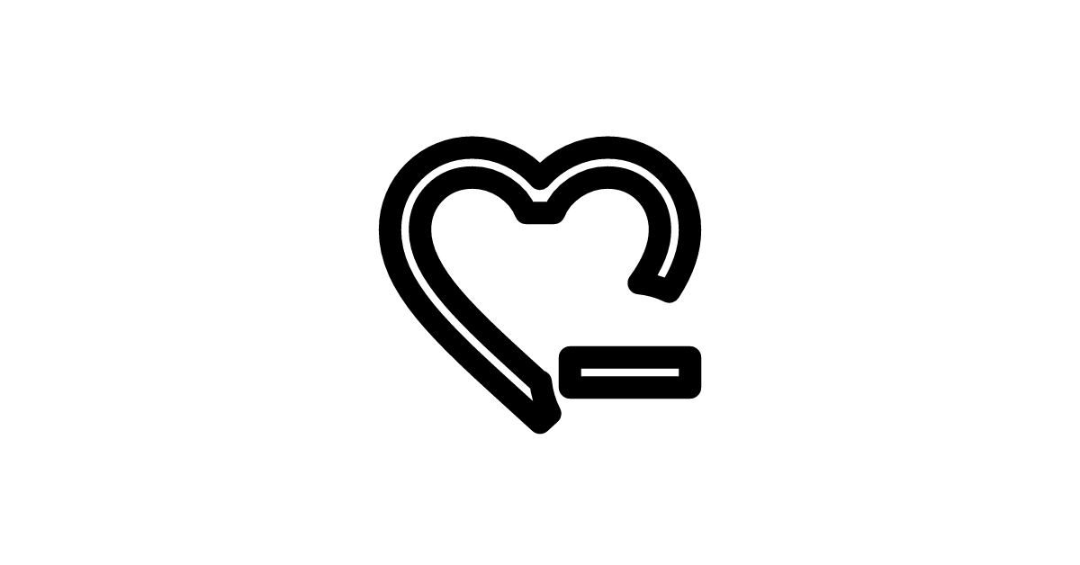 The heart-minus-outline icon represents a heart with a minus sign, with an outline style, symbolizing the removal or decrease of love or passion.