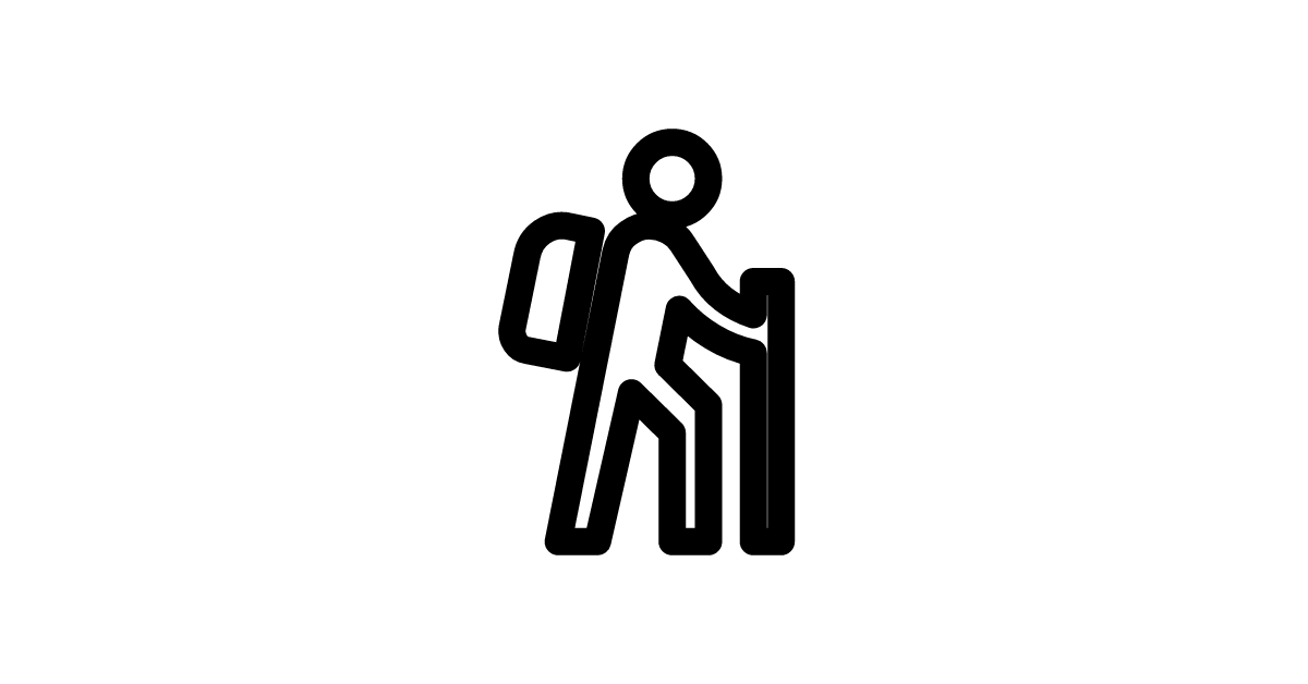 The hiking icon represents outdoor activities, particularly hiking or trekking, and signifies a connection to nature, sports, and recreation.