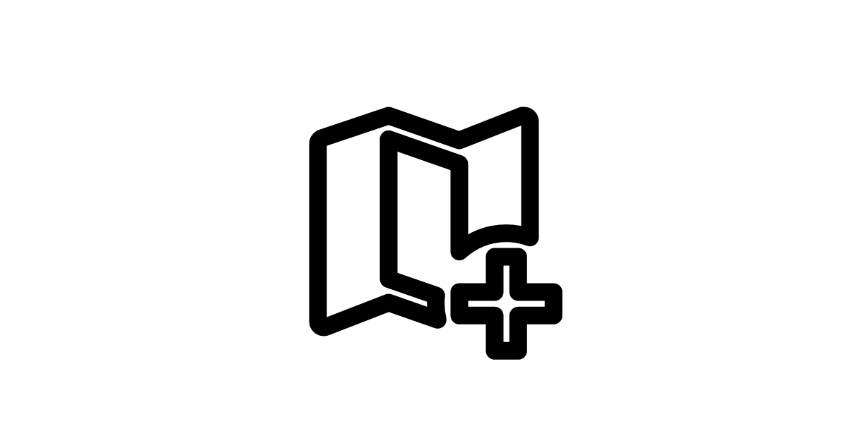 The map-plus icon represents a map with a plus sign, often used to symbolize adding or creating a new location, route, or marker on a map.
