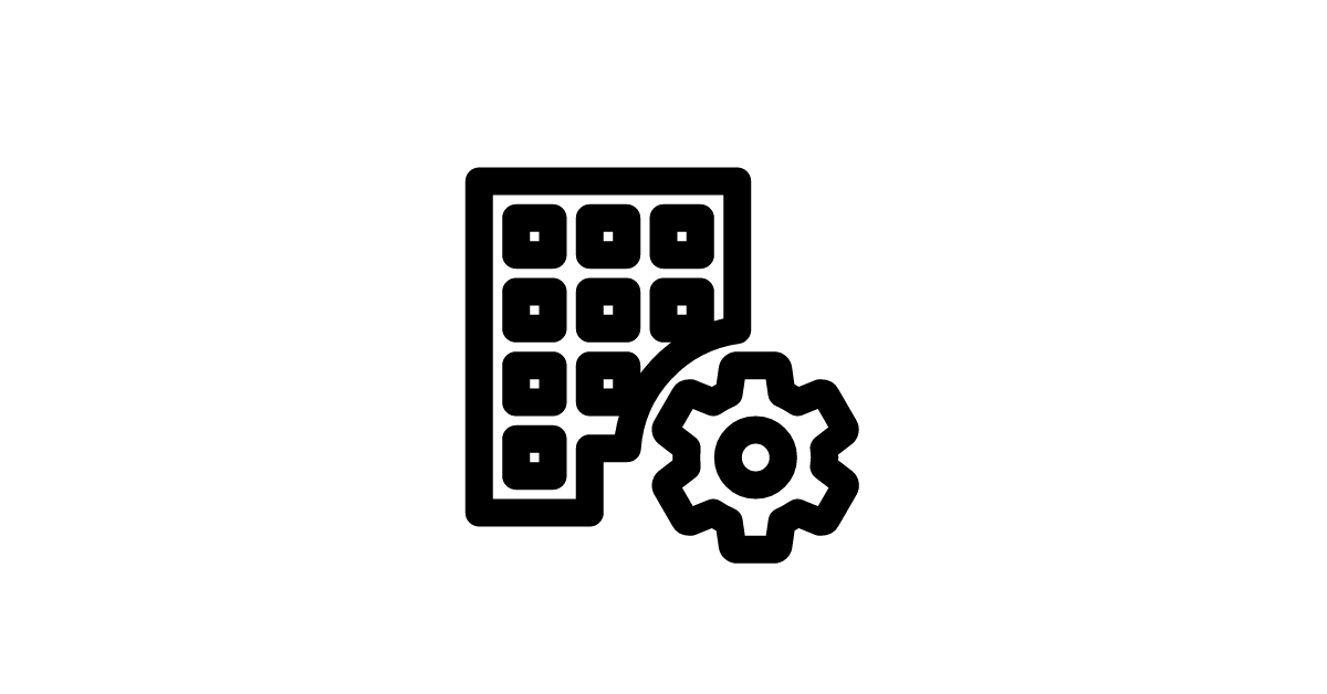 The office-building-cog icon represents a commercial or professional building with a settings or configuration element, used in architecture and administration contexts.