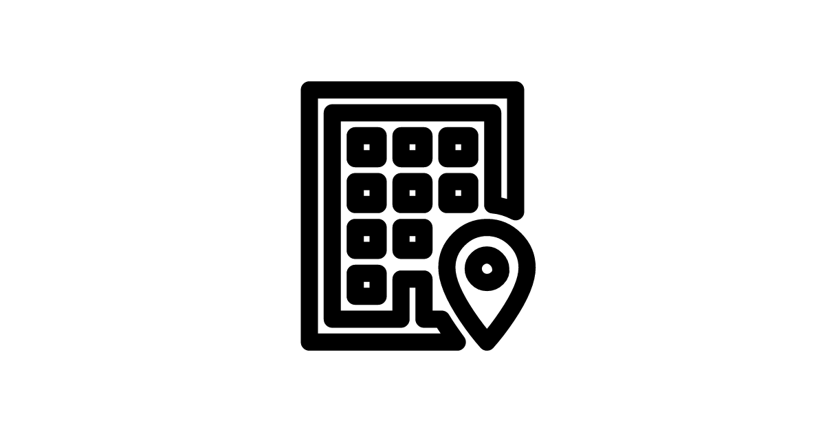 The office-building-marker-outline icon represents a building with a location marker or pin in an outlined style.