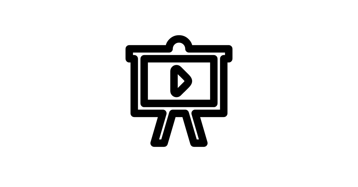 The presentation-play icon represents playing a presentation or slideshow, a series of slides used to communicate information to an audience.