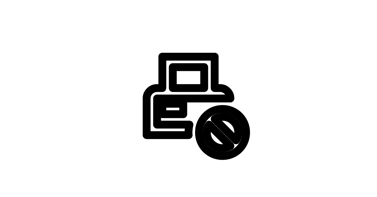 The printer-pos-cancel-outline icon represents a cancellation or rejection of a print job in a point-of-sale system, with an outlined style.