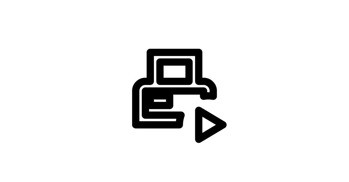 The printer-pos-play-outline icon represents a point of sale printer in a playing or started state, with an outline style, indicating that printing has begun.