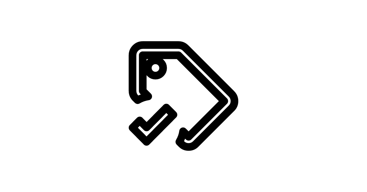 The tag-check-outline icon represents an outlined checked tag label often used for validation or confirmation.