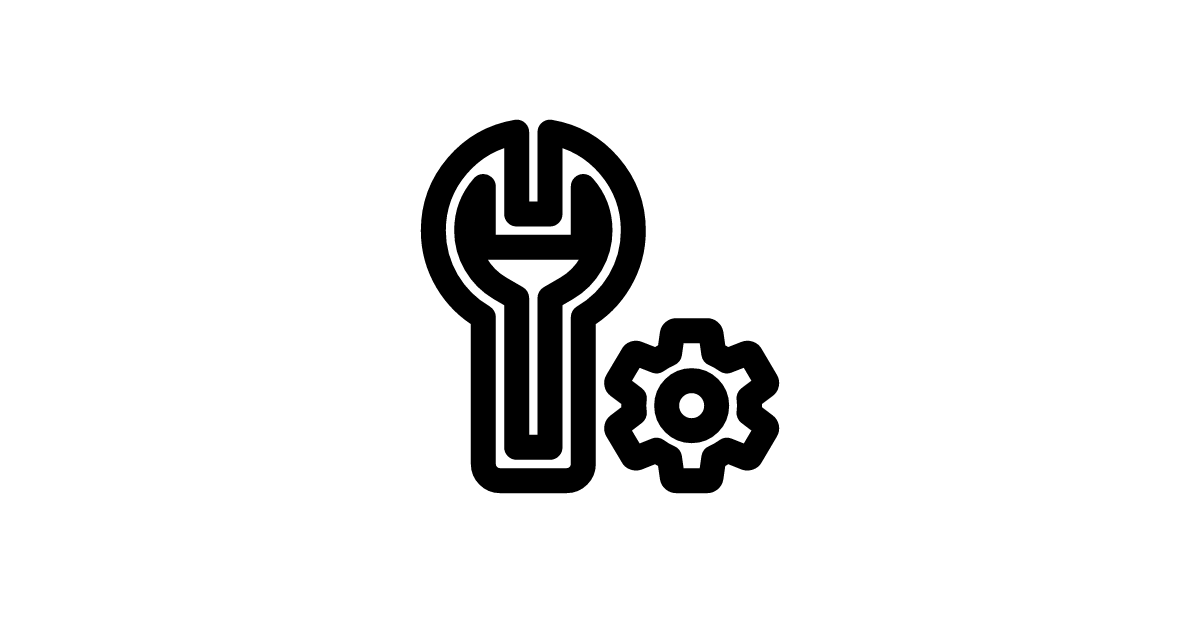The wrench-cog-outline icon represents a tool used for adjusting or repairing machinery with a gear or cog and an outline style, symbolizing configuration or maintenance.