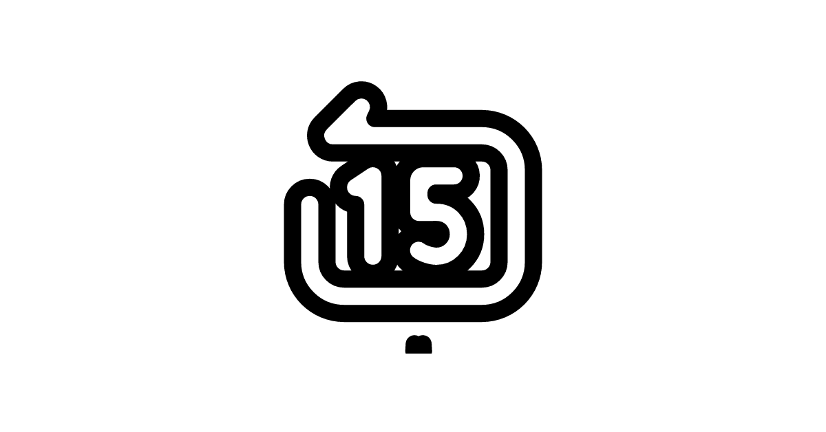 The rewind-backward-square-15-fill icon represents a rewind or backward movement function, commonly used in media players or video editing software to navigate 15 seconds backward.