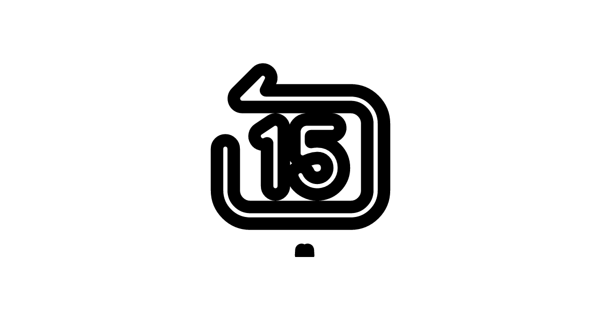 The rewind-backward-square-15-line icon represents a rewind or backward movement function, commonly used in media players or video editing software to navigate 15 seconds backward.