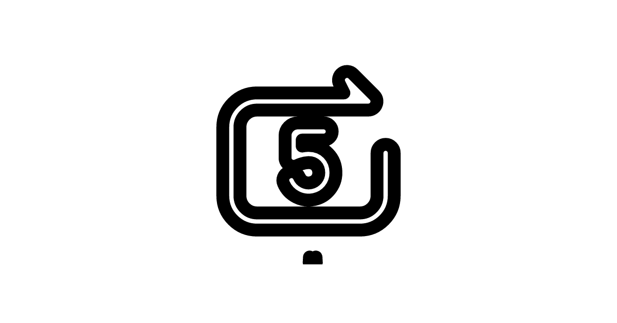 The rewind-forward-square-5-line icon symbolizes media player tools facilitating rewind/fast-forward actions 5 seconds.