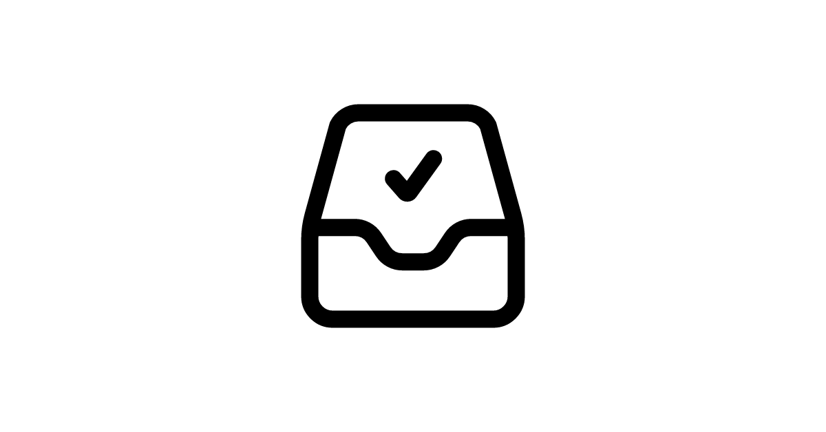 The inbox-check icon represents a mailbox or container for storing and organizing messages, emails, or notifications, with a verified or checked status.