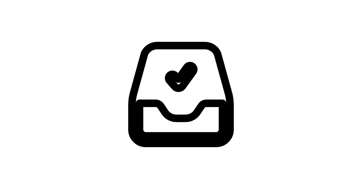 The inbox-check-solid icon represents a filled mailbox or container for storing and organizing messages, emails, or notifications, with a verified or checked status.