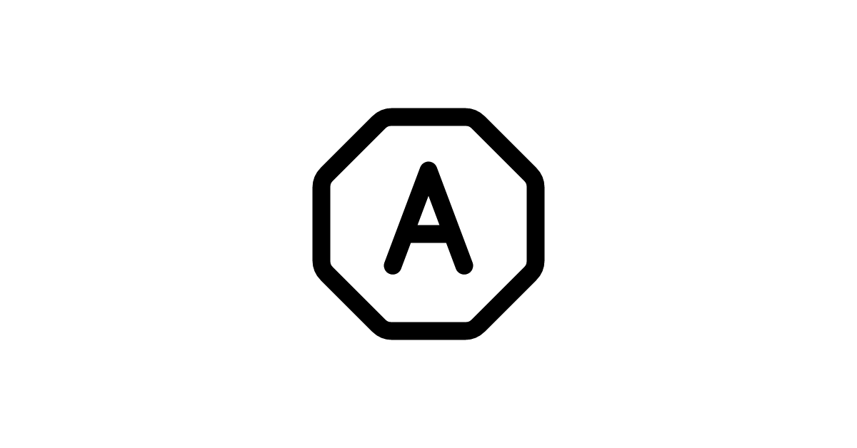The letter A octagon icon represents a stylized typographic character used in writing and design, surrounded by an octagonal shape.