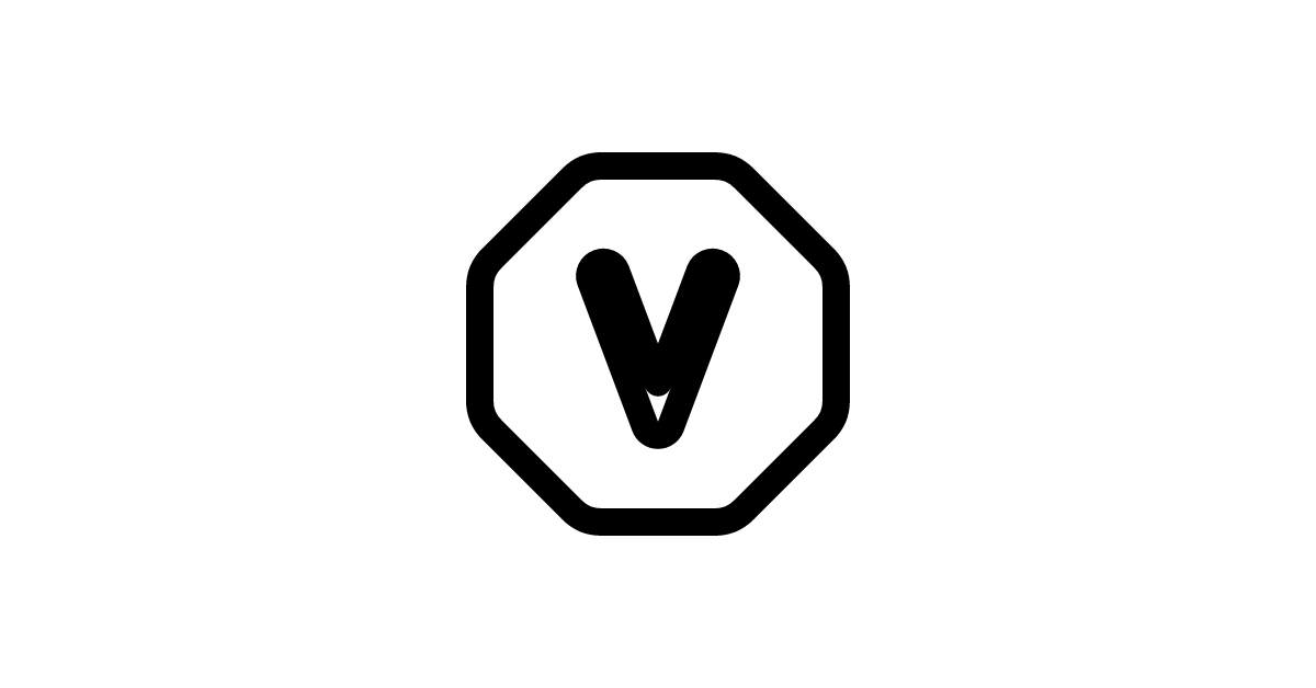The letter V octagon solid icon represents a stylized letter V enclosed in an octagonal shape with a solid fill.