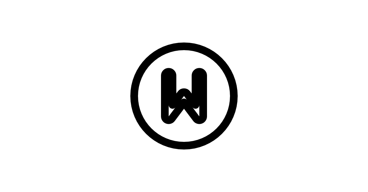 The letter W circle solid icon represents a stylized letter W enclosed in a solid circle, often used for typography and character representation in UI design.