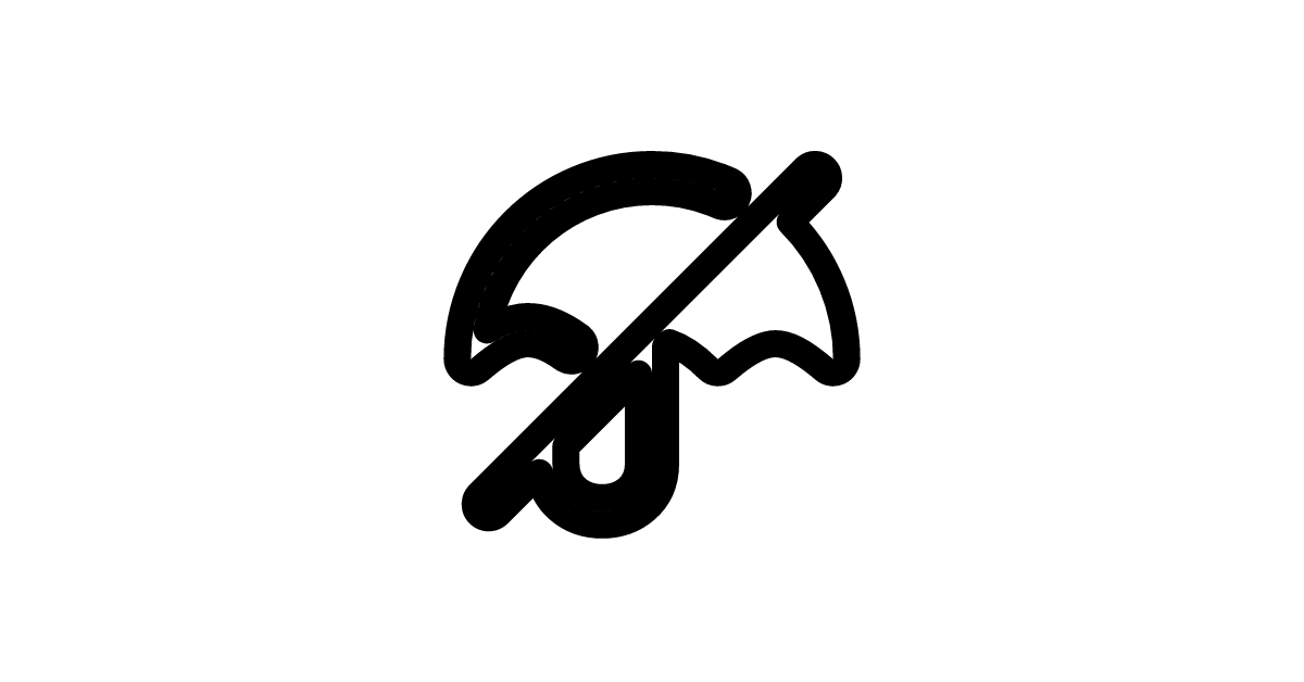 The umbrella-off-solid icon represents a filled or solid version of the umbrella-off symbol, often used to emphasize the absence of precipitation.