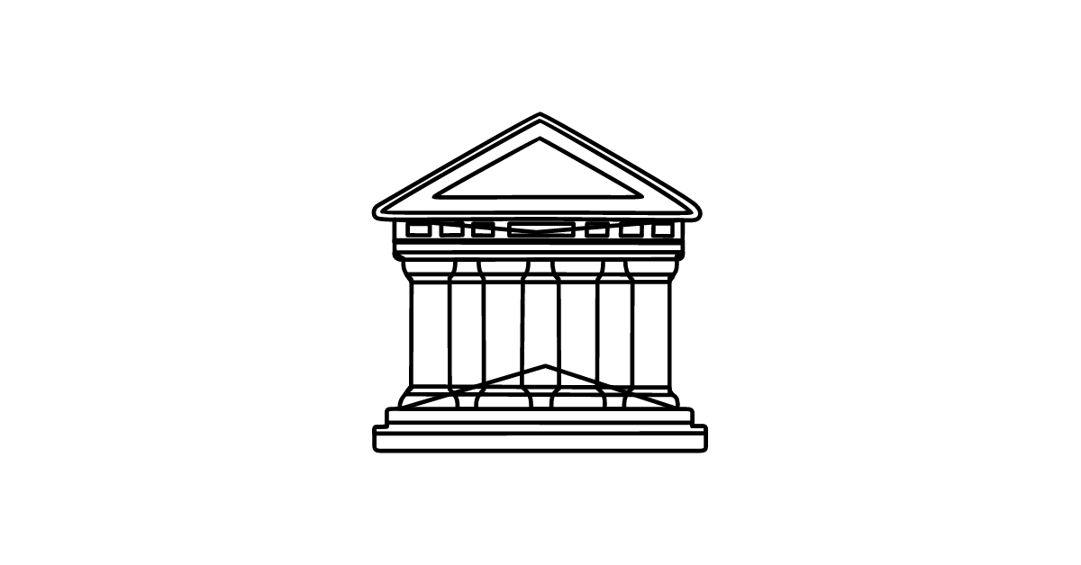 The classical building icon represents a historic, architectural landmark, symbolizing culture, history, and tradition.