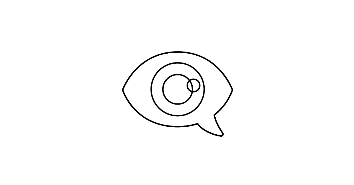 The eye-in-speech-bubble icon represents a combination of vision and communication, often used to convey the idea of observing or being watched during a conversation.