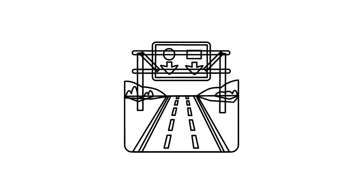 The motorway icon represents a type of high-speed road designed for fast and efficient transportation, often characterized by its multiple lanes and controlled access points.