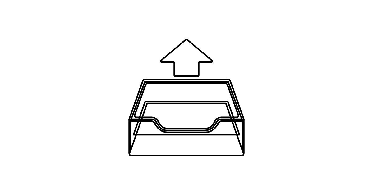 The outbox tray icon represents a container for sending or dispatching items, often used in the context of email or package delivery.