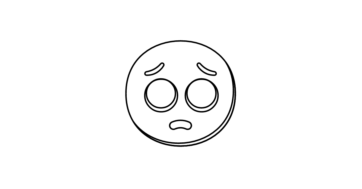 The pleading face icon represents a facial expression of desperation, sadness, or pleading.