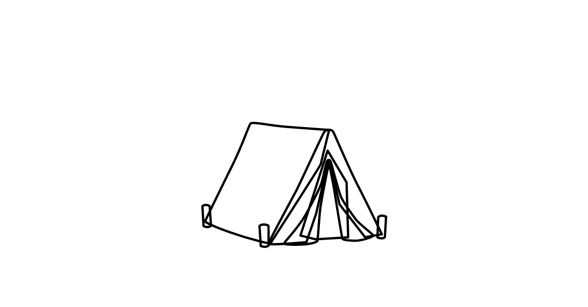 The tent icon represents a portable shelter used for camping or temporary accommodation.