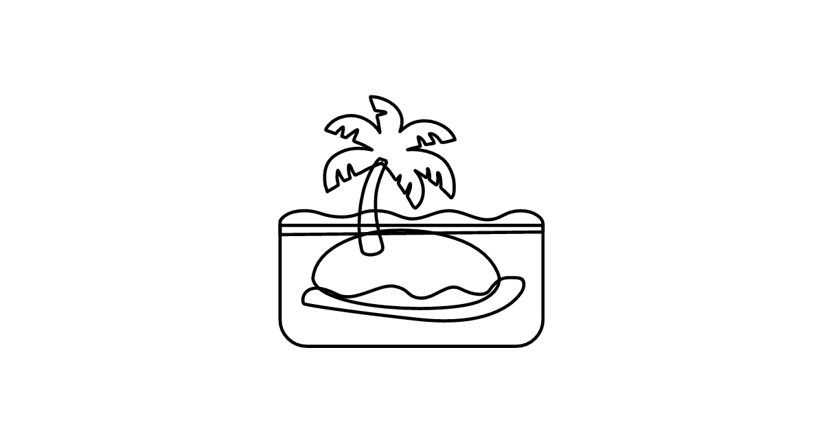 The desert island icon represents a type of isolated and uninhabited island, often associated with tropical climates and remote locations.