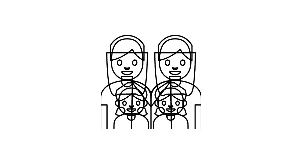 The family-woman-woman-girl-girl icon represents two women and two girls, symbolizing a family relationship.