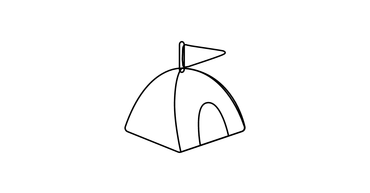 The tent icon represents a portable shelter, often used for camping or outdoor activities.