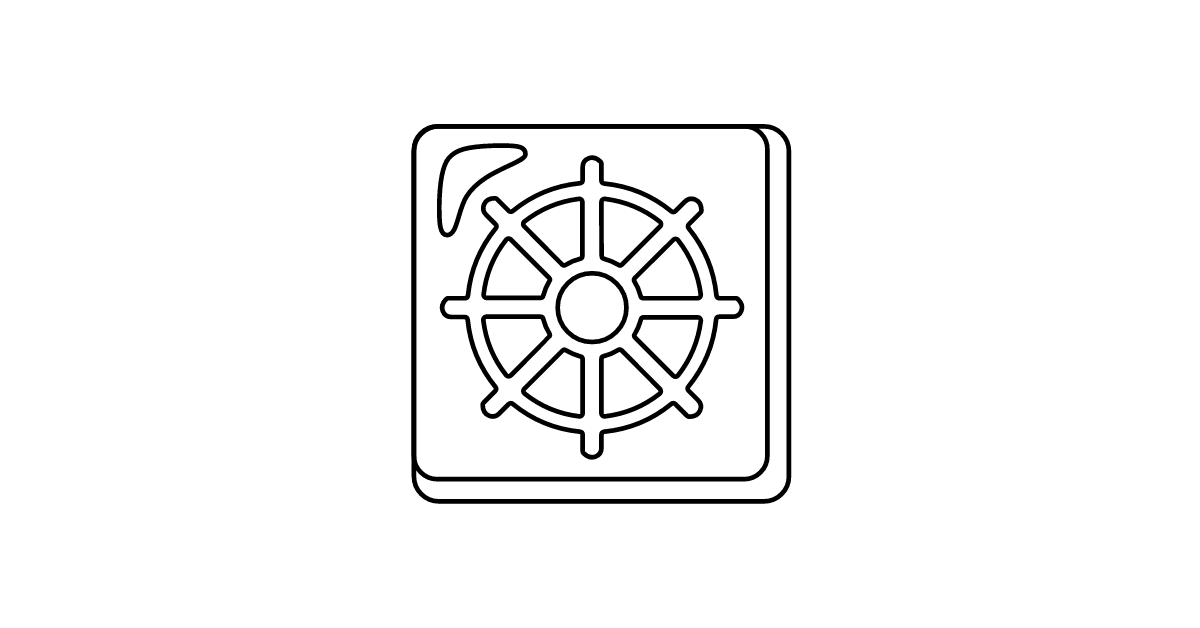 The wheel of dharma icon represents a sacred symbol in Buddhism, often used to signify spiritual growth and enlightenment.