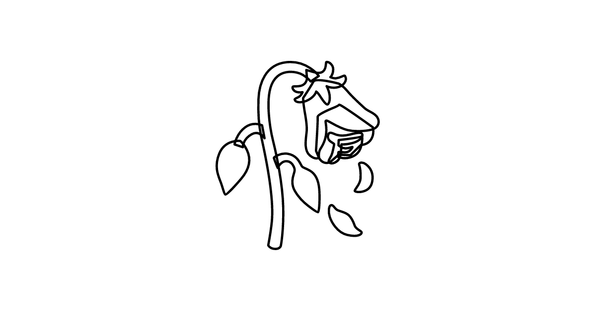 The wilted-flower icon represents a plant or flower that has wilted or lost its vitality, often used to denote sadness or disappointment.