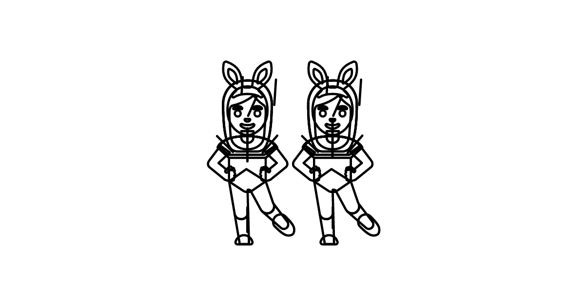 The 'women-with-bunny-ears-dark-skin-tone-light-skin-tone' icon represents a character with both dark and light skin tones, symbolizing diversity and inclusivity in a playful context.