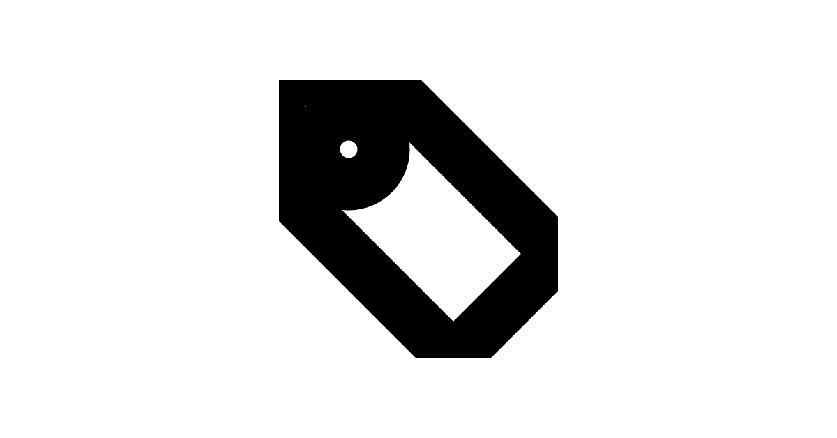 The tag icon represents content labeling, categorization, and metadata tagging in organization and content management applications.