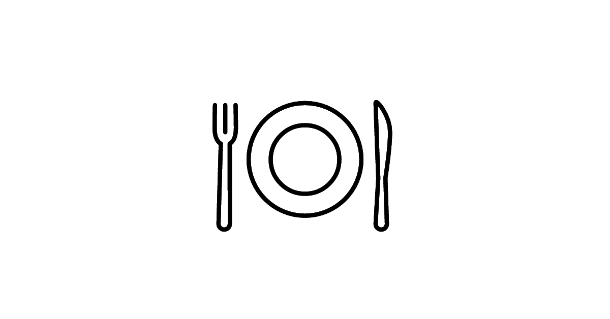 The fork and knife with plate icon represents a complete dining setup, including eating utensils and a plate.