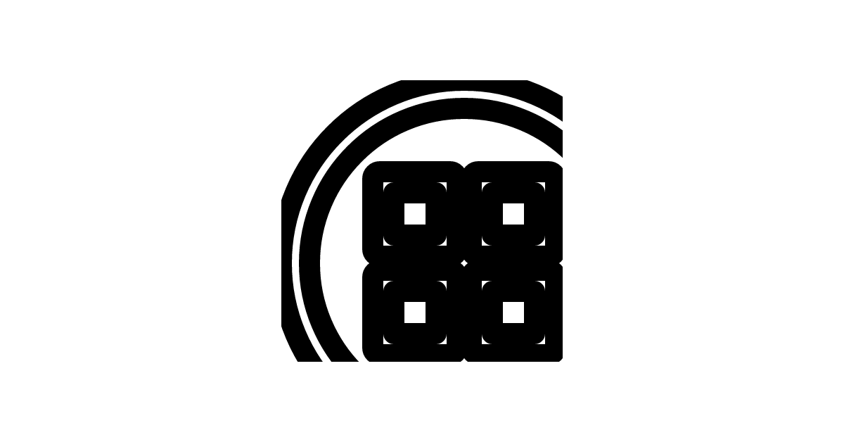 The grid-circle icon represents a GUI element used for organizing content in a grid layout, enclosed in a circle.