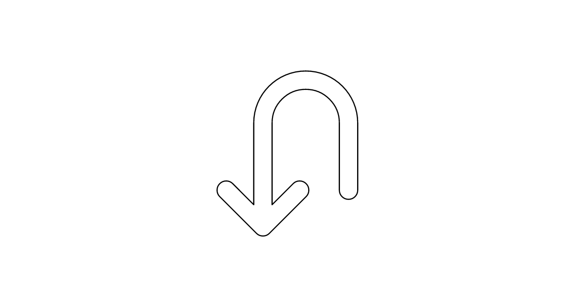 The arrow-u-left-down-bold icon represents a bold, left-pointing arrow moving down.