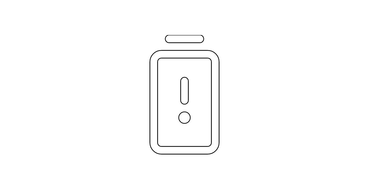 The battery warning vertical icon represents a battery with a warning sign, indicating low power or a malfunction.