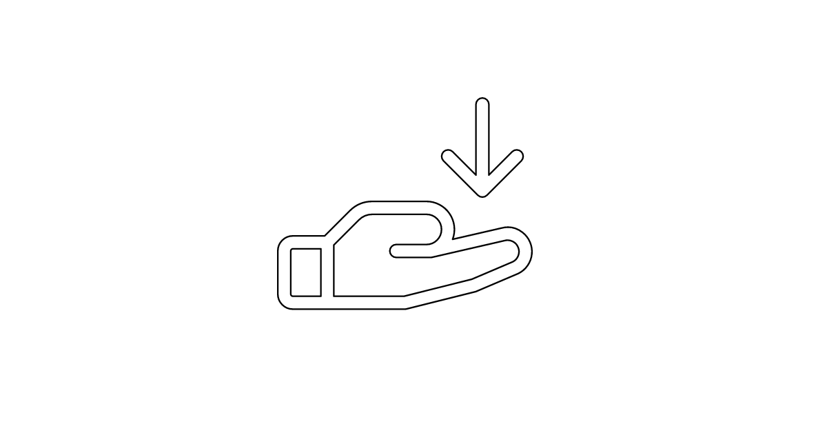 The hand-arrow-down-light icon represents a light or outlined version of the hand-arrow-down icon, often used to symbolize movement, navigation, or interaction.