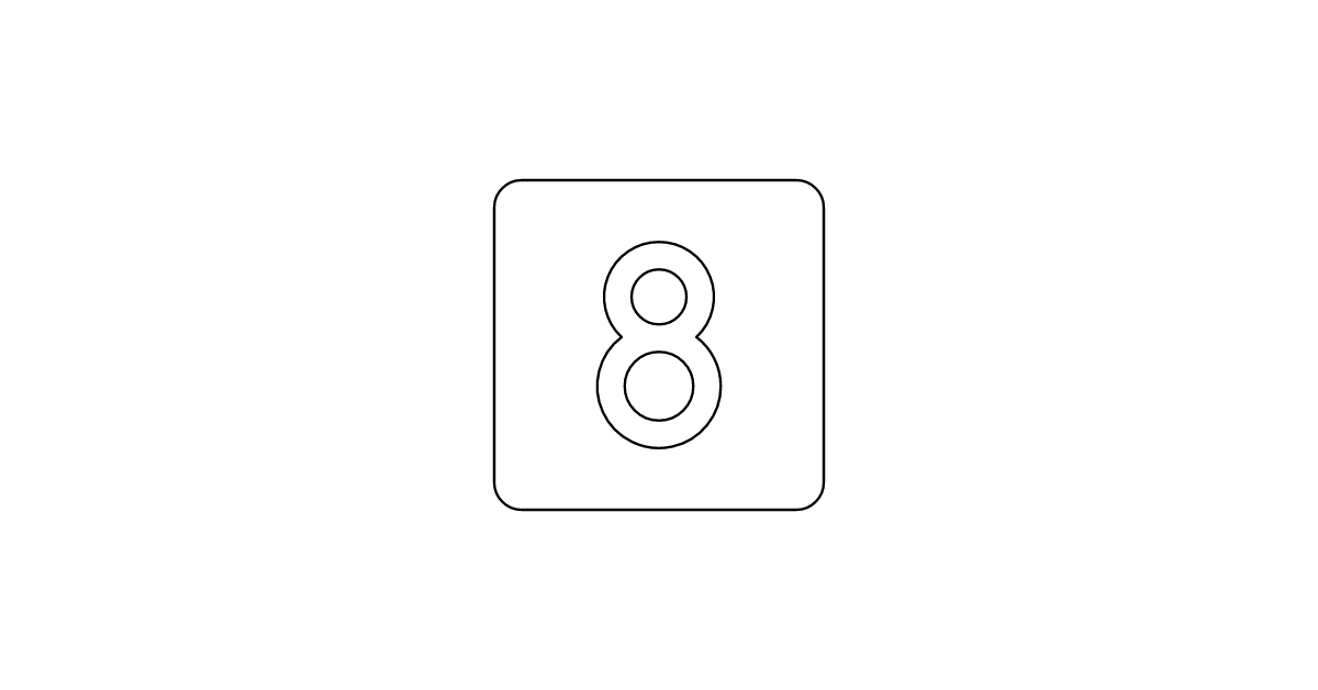 The number-square-eight-fill icon represents the number eight in a square format with a filled style.