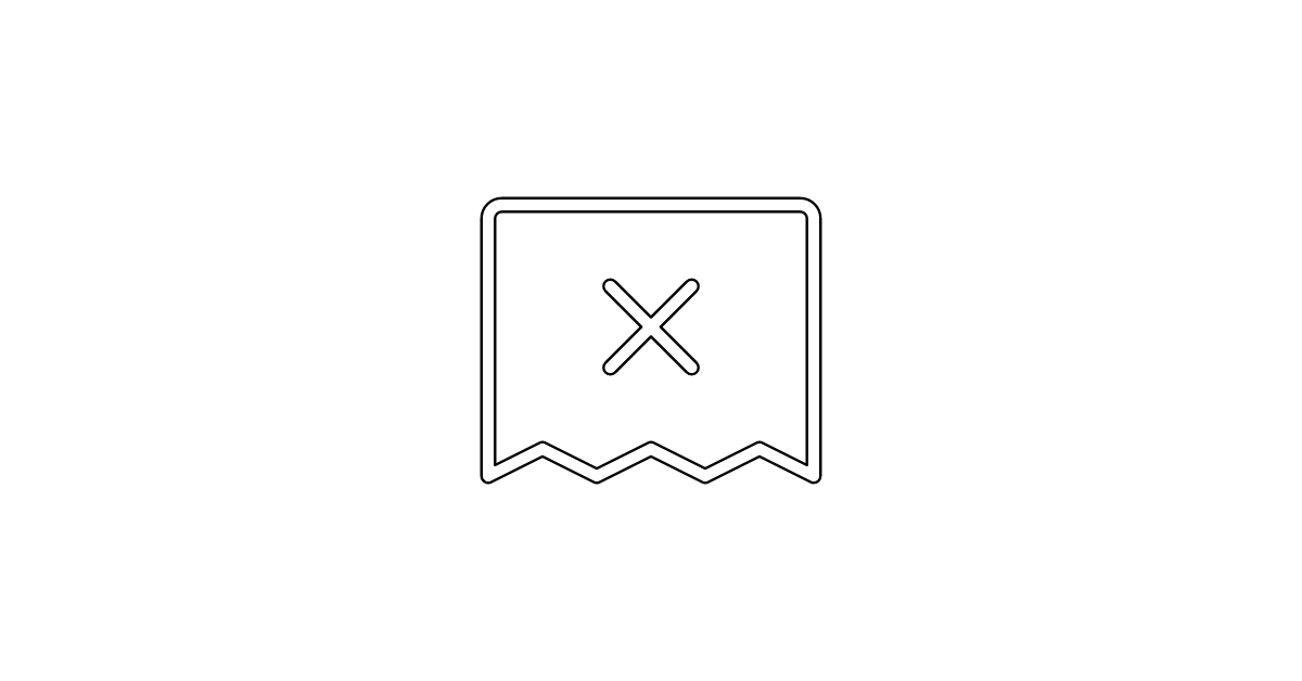 The receipt-x-thin icon represents a receipt or invoice document with a thin cancellation or deletion mark, often used in finance and accounting to signify a voided or cancelled transaction.
