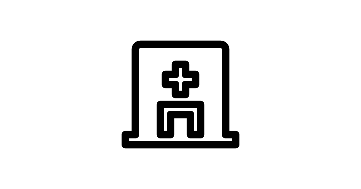 The hospital-fill icon represents a filled hospital symbol often used for medical interface elements.