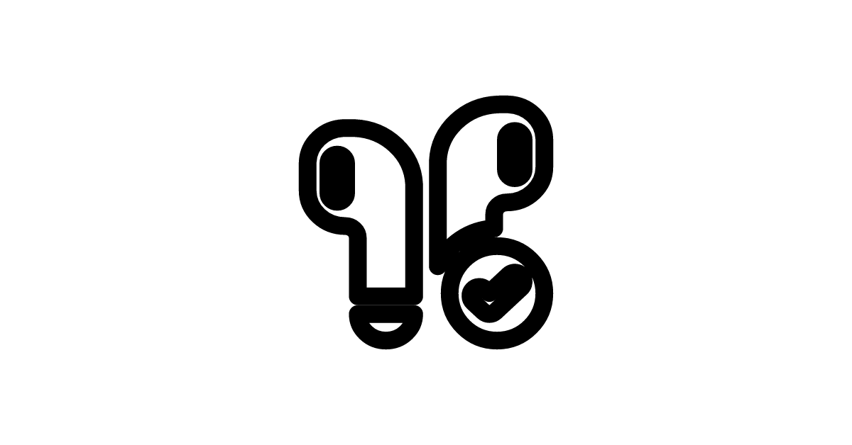 The airbuds-check-bold icon represents a verified or confirmed status for a pair of wireless earbuds.