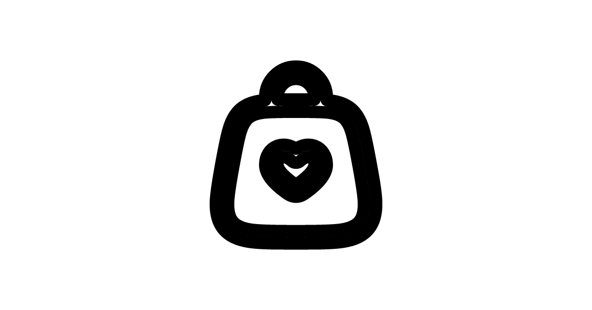 The bag-heart-outline icon represents a bag with a heart in an outlined style, symbolizing a subtle or suggested expression of love or affection for shopping.