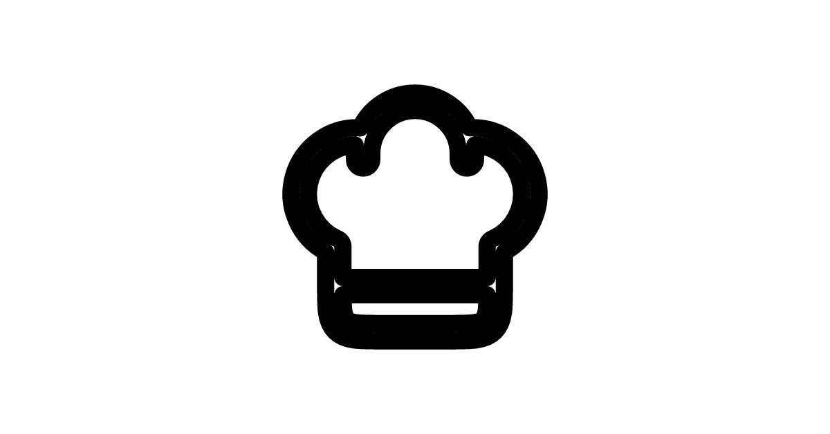 The chef-hat-outline icon represents a chef's hat in an outline style, commonly used in cooking and food-related contexts.